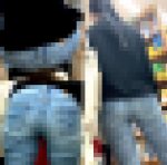 途中でドラッグストアに寄って、お尻突き出しでより下着が鮮明に透けちゃってw