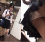 すると2人は駅の改札へ続く上り階段の方へ向かっていきました。そこで彼女に近づいていきます。そして彼女が階段を上るところで彼氏にバレないようにこっそりとスカートの中へとカメラを差し込みました。階段を上る途中、彼女はスカートの裾を押さえてパンチラしまいとがんばっていました。しかしそれ以上にデニムのスカートはヒラヒラしたので、カメラはスカートの中を完全に捉えました。