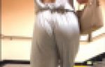 黒いスラックスがゆるーくケツのラインを覆い、パンティラインも透けています。出会って○秒で合体!などの設定ではズルリ!と一瞬で脱がせることができそう。