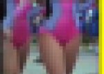 2019年のダンサーの中で一番際どい衣装のダンサーです。ほぼはみ出してます。鋭いハイレグと紐状態のTバックがセクシーです。大事な部分の剃り跡も確認出来るくらい接写しました。