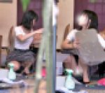 もう1人手伝いに来た子をローアングルで狙ったら、、はみ出た陰毛にびっくり