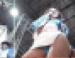 ボンネットに腹ばいになった金ラメちゃんを取り囲むびでお君たちの群れ、群れ、群れ……。どこをどう撮ろうとへっちゃらの(ミニスカ+生脚+Tバックの)金ラメ&銀ラメ・ムチムチコンビちゃんを、距離“ゼロ”のベストポジションで長回しの前半(←『ブースの係員も、面白がってファインダーを覗きに来る始末で(笑)』)。
