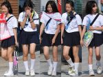 ピタピタ薄生地の下から浮かび上がるパンティライン、クロッチ、透ける柄、レースで縁取られた文様、中にはナプ着等…